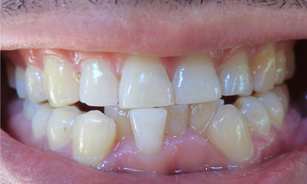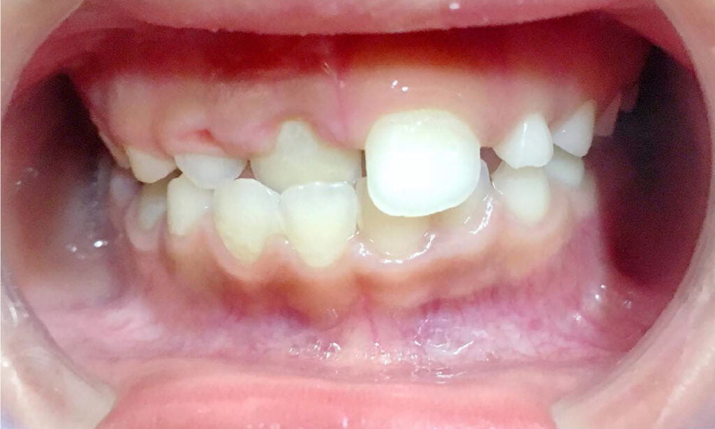 Esta anomalía ocurre cuando no hay suficiente espacio en la boca, lo que genera que los dientes pueden alinearse de forma incorrecta.